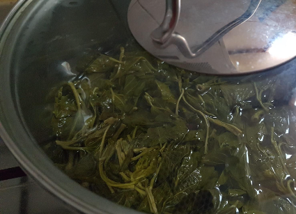 다래순은 4월 중순에서 5월초순의 어린순을 따서 끓는물에 데쳐 채반에 올려놓는다.
