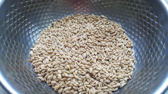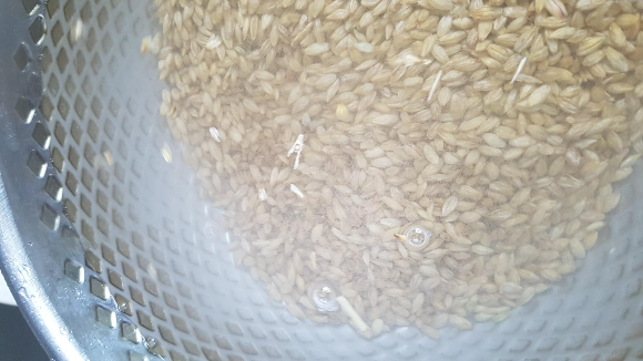 겉보리를 씻을때 물을 충분히 넣으면 물위로 잡티나 보리 껍질등이 뜨는데