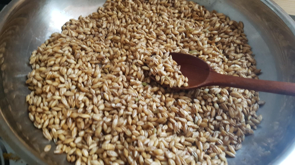 다 볶아진 겉보리는 식혀 밀봉하여 냉장실에 넣고