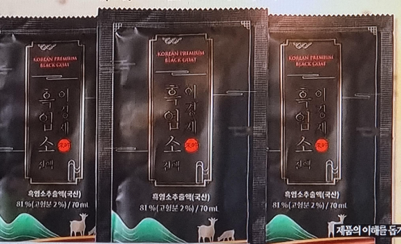 홈쇼핑에서 소개되는 이경제 흑염소진액은 18가지 전통원료를 사용하여 흑염소 특유의 누린내를 잡았다.