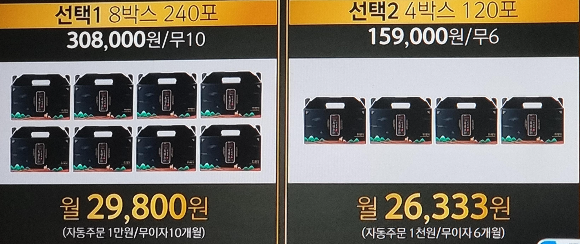 이경제 흑염소진액은 8박스 240포에 30만8천원, 4백스 120포에 15만9천원이다.