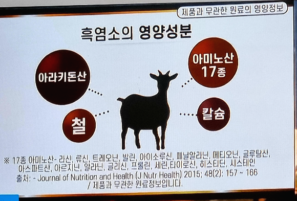 흑염소는 17종의 영양성분을 가진것으로 알려져있다.