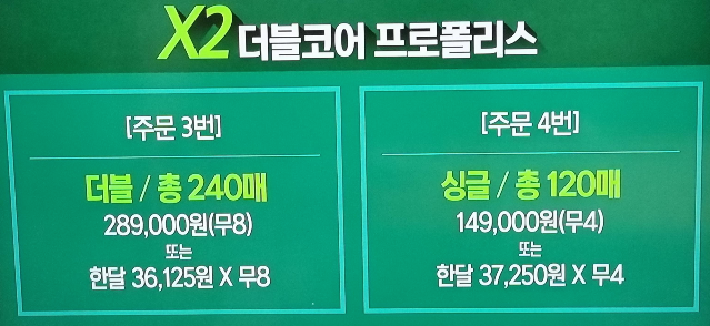 더블프로폴리스 더블형 총 240매와 싱글 총120매이다.