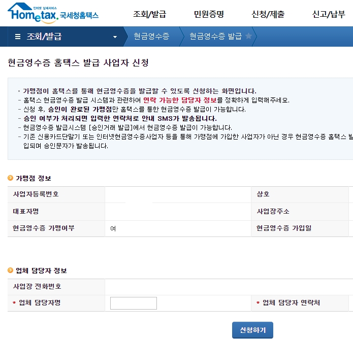 사업자가 홈텍스에서 현금영수증을 발급하려면 우선 현금영수증 홈텍스 발급 사업자 신청을 하여야한다.
