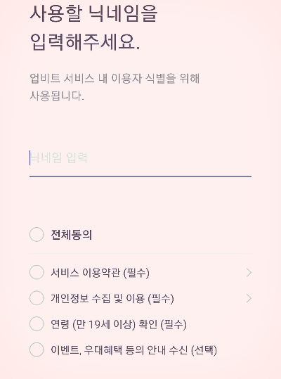 사용할 닉네임을 입력해야한다. 문자와 숫자의 조합으로 입력할 수 있는데 사용자가 많다보니 웬만한 닉네임은 모두 이미 가입되어있었다.
