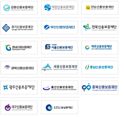신용보증재단과 신용보증기금이 있는데 신용보증재단은 비교적 소액이며 작은 규모의 대출이 가능하고 신용보증 기금은 비교적 큰 금액을 빌릴 수 있다.