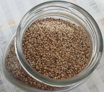 수입산 참깨는 뽀얗고 동그라며 납작한 느낌이 있으나 반면 국산 참깨는 누런빛과 갈색깨알도 섞여있는 뽀얀색이다.