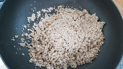 한꼬집 먹어보아 참깨의 고소함이 느껴질때 불을 꺼야한다.