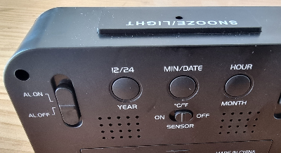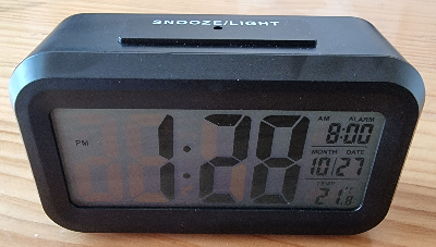 알람을 맞추면 해당시간에 알람이 울리는데 시계의 맨 위의 사각 버튼을 누르면 불이들어오고 스누즈상태가 된다.