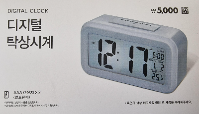 다이소에서 살수 있는 디지털탁상시계는 다양한 기능으로 실속있는 알람용시계이다.