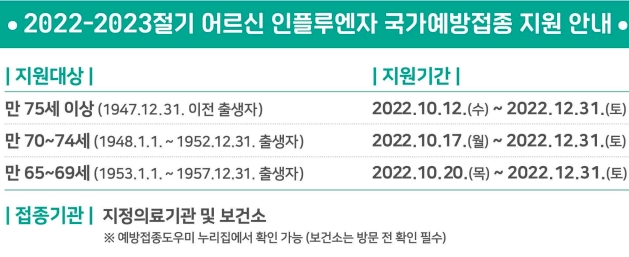 | 1회 접종 대상 | '22.10.5.(수)∼'23.4.30.(일) | ||