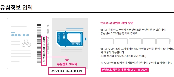 8. 이마트24 편의점에서 구입한 바로 유심칩 번호를 입력한다.