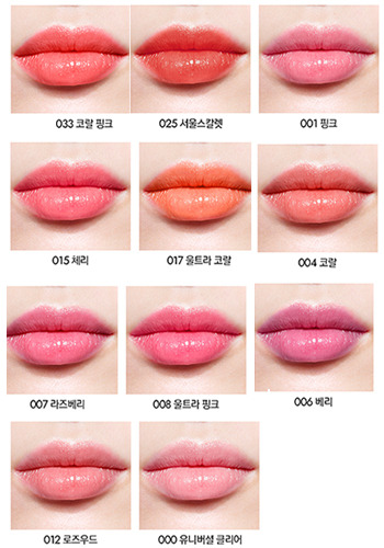 다음은 어딕트 립글로우 립밤 전색상을 포함하여 신상색상의 특징이다.